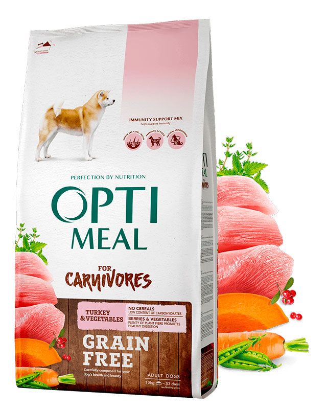 Optimeal беззерновой для взрослых собак индейка и овощи — оптимальный корм для вашего любимца. В его состав входит уникальный микс из полезных трав, ягод, отборных мясных ингредиентов и пребиотиков. Все это создает ежедневную естественную защиту иммунитета вашей собаки, а также гарантирует здоровье и красоту вашего любимца на долгие годы.